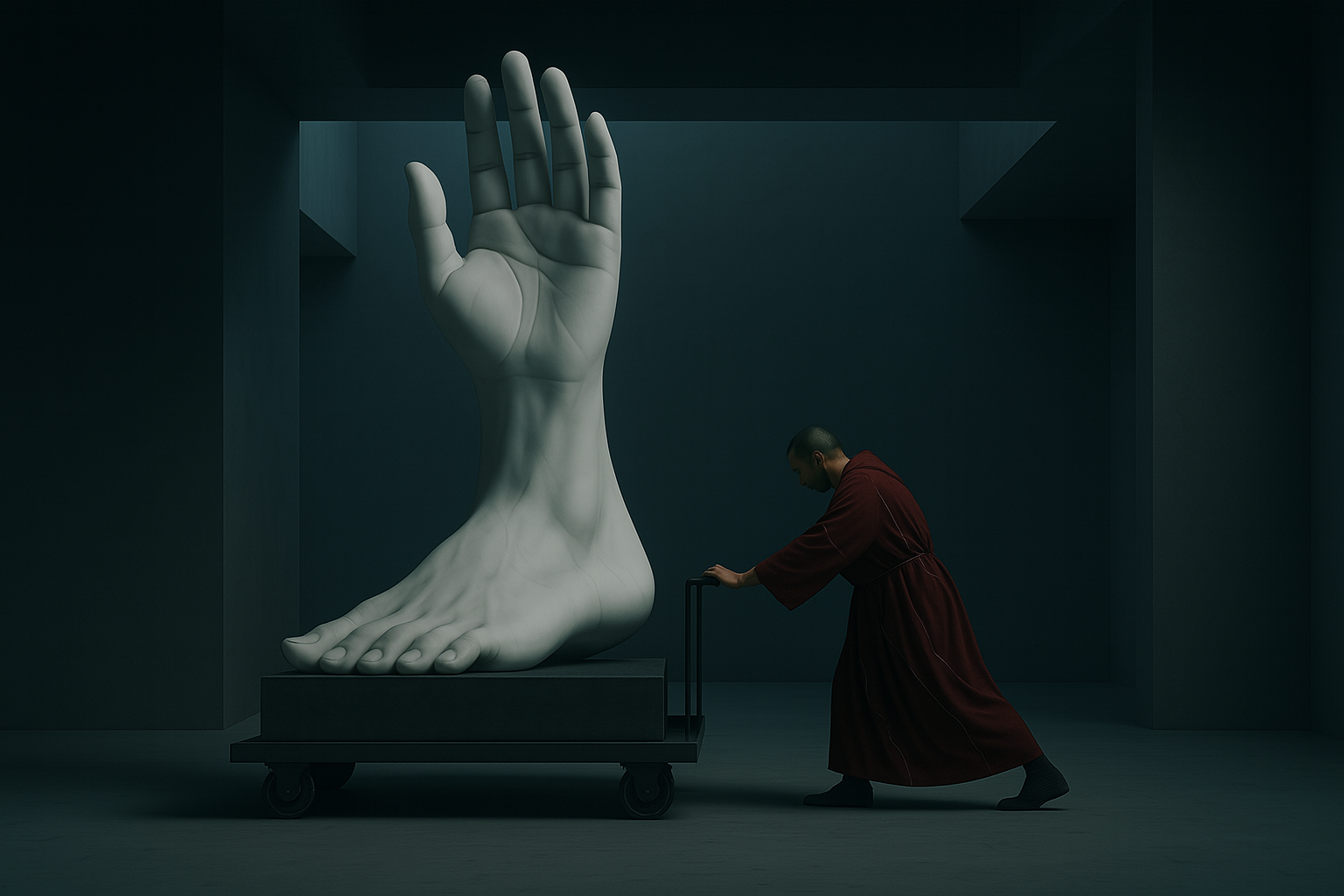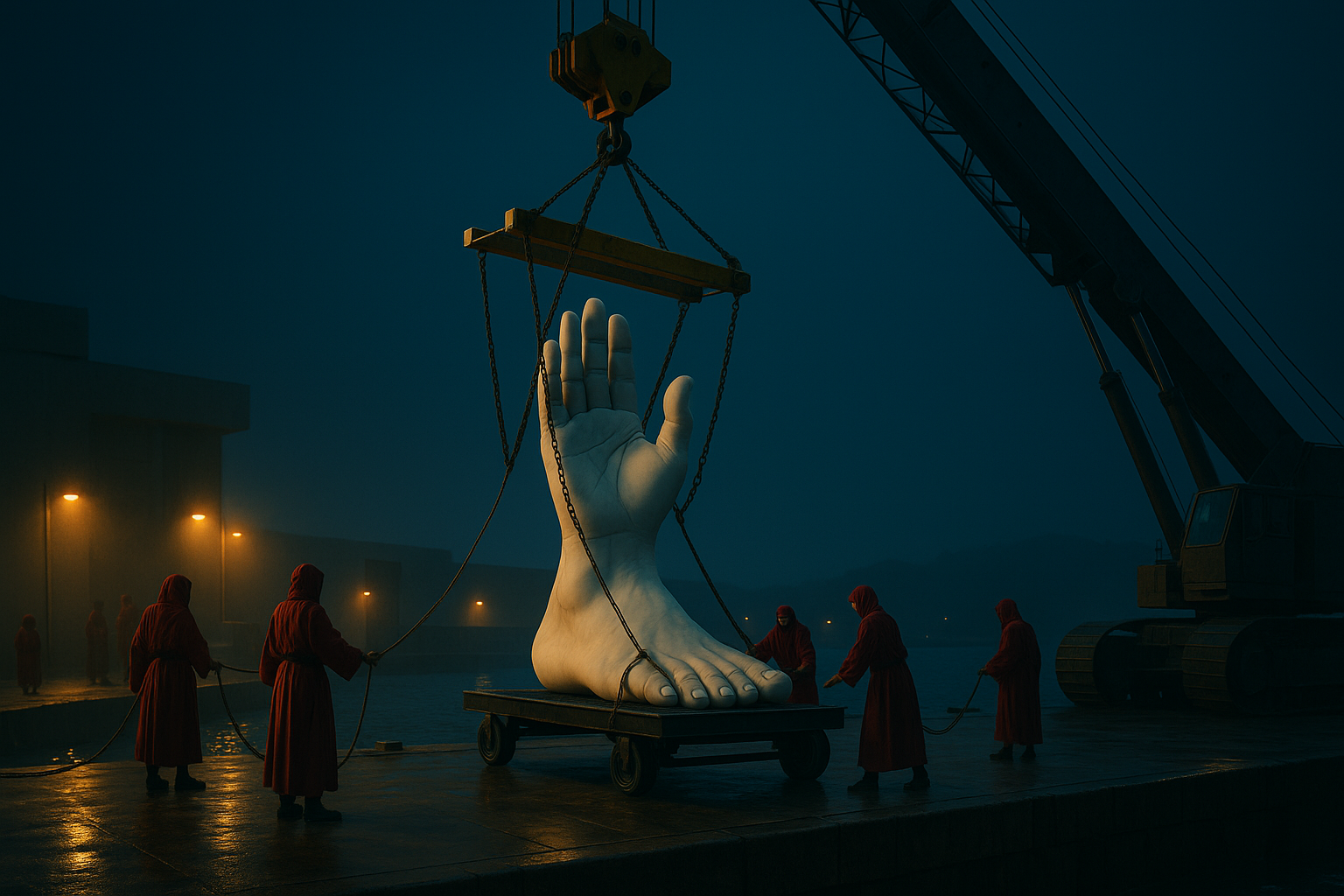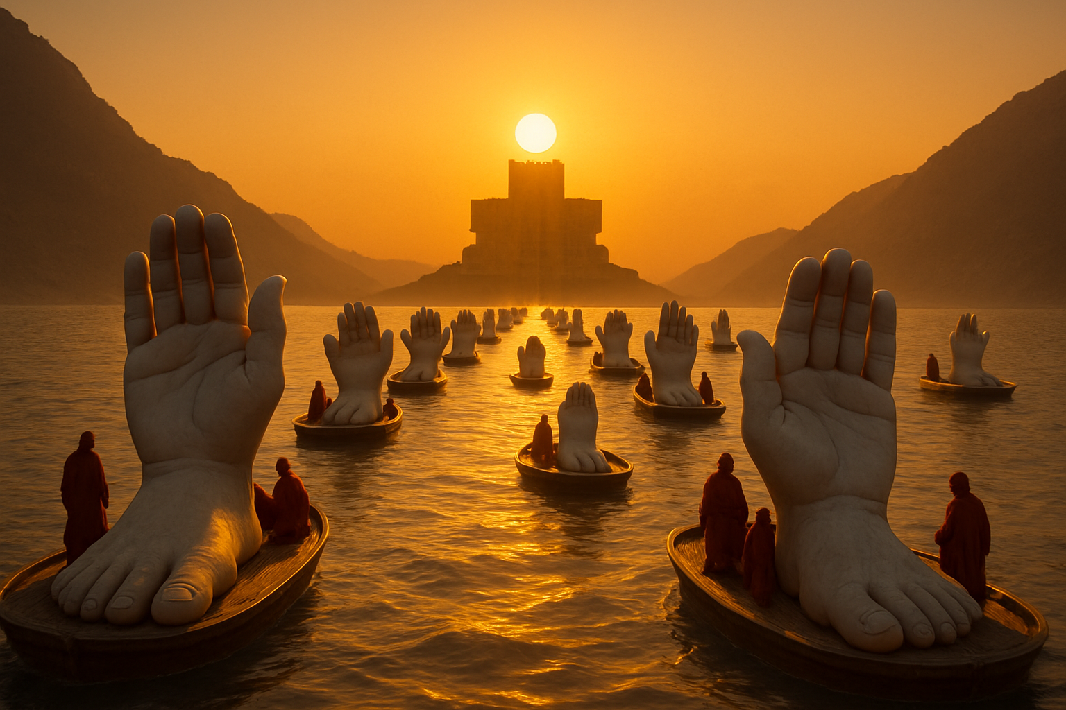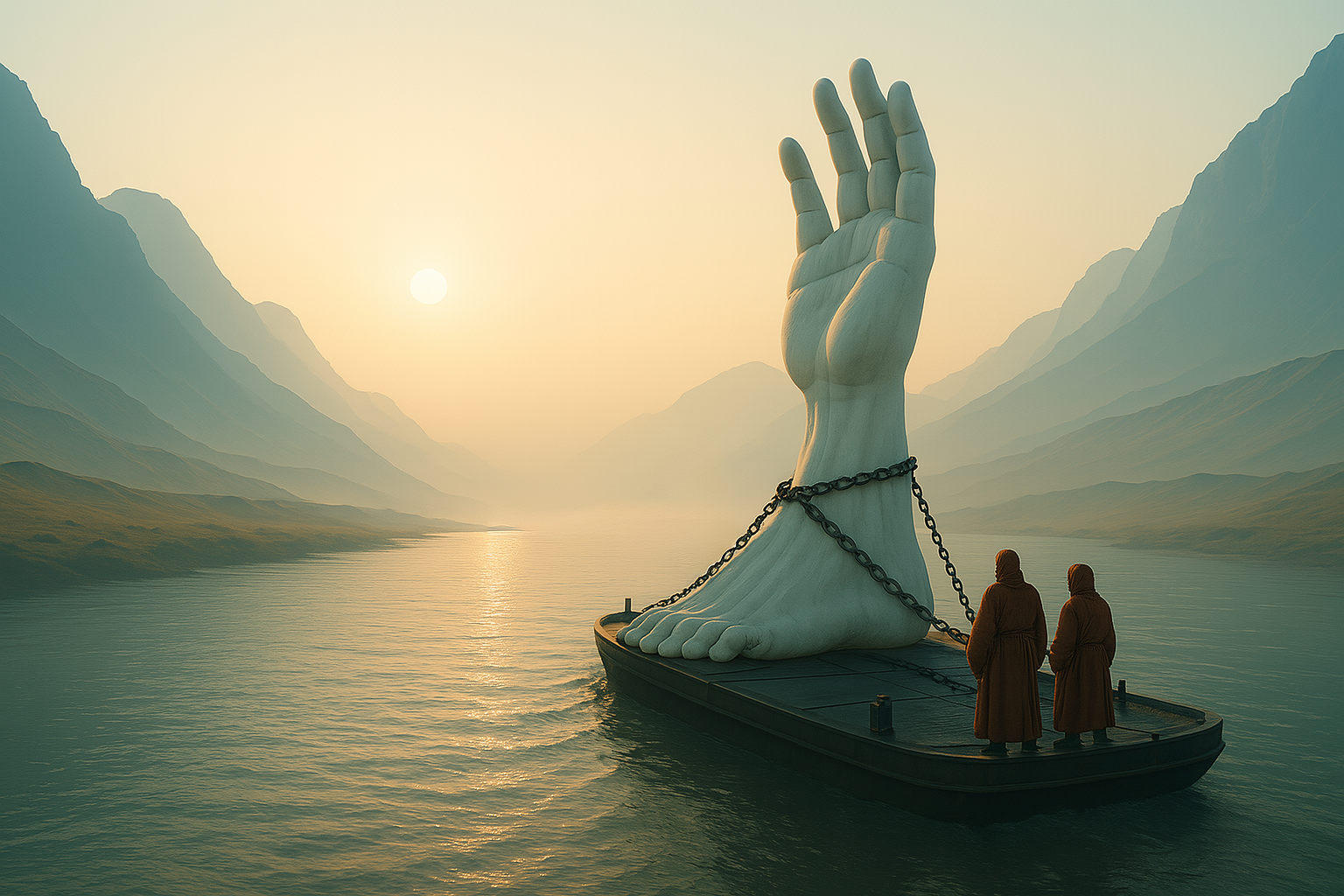The sculpture is shaped by a brotherhood of artisans who treat it not as an object, but as a living emissary. Before it can leave the world, it must travel through rivers, mountains and barren plains, where storms, water and erosion reveal both its strength and its fragility.